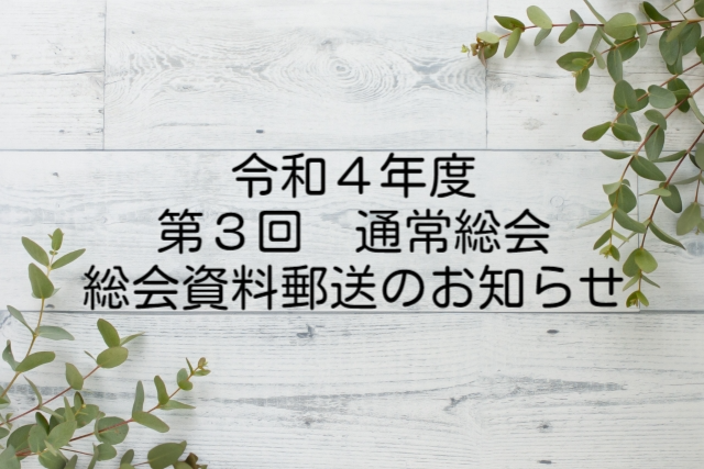 令和4年度 第3回通常総会 総会資料郵送のお知らせ